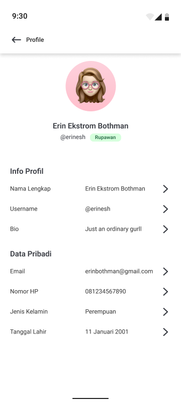 To accommodate the testing phase, I create the application prototype based on the current Hi-Fi design. This way, I can conduct usability testing to understand whether the application is intuitive or not. Also using the prototype, the application will look very real, so the user can easily imagine how the product will become.