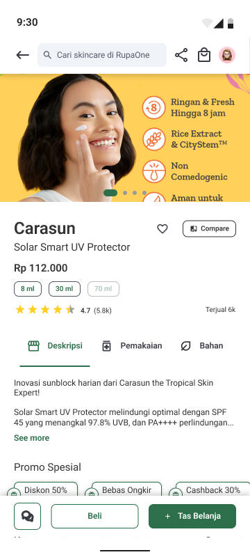 The current technological developments ‘force’ us to maximize the use of technology in our daily activities. Even when we wake up, shower, eat, and go to work, technology is quietly tucked into the activities we do. Technology also exists when tertiary activities such as preening. Among these technological advances, there are also concerns about the side effects and other worst-case scenarios. This anxiety is also often felt by women and men who are also users of technology in their preening activities. Anxieties that may sound ‘trivial’ to some people, such as the originality of the make-up or skincare products they use. Until the most complicated about what makeup or skincare products are suitable and not suitable for their skin. These concerns made me decide to make a mobile application “RupaOne”.